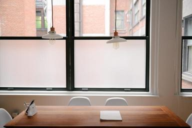 Keywords: notepad paper table wood chairs lights windows office pencils business