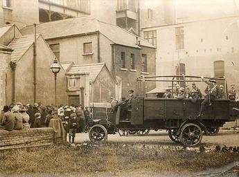 | Keywords: military military enquiry militaryenquiry croke park crokepark bloody sunday bloodysunday soldiers jervis street hospital jervisstreethospital jervis street jervisstreet dublin ireland war of independence warofindependence irish war of independence irishwarofindependence november 1920 1920s twenties truck lorry w.d. hogan wdhogan hogan collection hogancollection national library of ireland nationallibraryofireland outdoor vehicle monochrome Friends of the victims and members of the military outside Jervis Street Hospital during the military enquiry into the Bloody Sunday shootings at Croke Park on Sunday, 21 November 1920. Monday's Irish Independent reported what had happened under the headline Raid on Football Match: "Terrifying scenes were witnessed yesterday at Croke Park when, during the progress of a challenge football match between teams representing Dublin and Tipperary, military, R.I.C., and auxiliary police made their appearance. Volleys of rifle fire were heard, and 15,000 spectators fled in a desperate attempt to escape. The casualties total 12 killed, 11 seriously wounded, and 54 others injured. An official account states the Crown forces went to seek persons concerned in the shootings yesterday morning, and alleges that pickets raised an alarm and fired on the approaching forces, the fire being returned. There were most painful scenes subsequently when the dead, who include one of the Tipperary players, and wounded were picked up and removed to hospital." Date: 24 November 1920 NLI Ref.: HOG161 Friends of the victims and members of the military outside Jervis Street Hospital during the military enquiry into the Bloody Sunday shootings at Croke Park on Sunday, 21 November 1920. Monday's Irish Independent reported what had happened under the headline Raid on Football Match: "Terrifying scenes were witnessed yesterday at Croke Park when, during the progress of a challenge football match between teams representing Dublin and Tipperary, military, R.I.C., and auxiliary police made their appearance. Volleys of rifle fire were heard, and 15,000 spectators fled in a desperate attempt to escape. The casualties total 12 killed, 11 seriously wounded, and 54 others injured. An official account states the Crown forces went to seek persons concerned in the shootings yesterday morning, and alleges that pickets raised an alarm and fired on the approaching forces, the fire being returned. There were most painful scenes subsequently when the dead, who include one of the Tipperary players, and wounded were picked up and removed to hospital." Date: 24 November 1920 NLI Ref.: HOG161 |