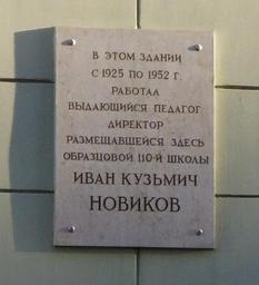 Keywords: Novikov IK memory.jpg en Memorial wall sign Ivan Novikov on the scool 110 in Merzljakovsky Lane Moscow own Pavlov 09/11/2008 Memorial wall signs in Moscow Merzlyakovsky Lane 11