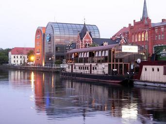 Keywords: Nowe spichrze i barka zmierzch mały.jpg pl Nabrzeże Brdy w Bydgoszczy own Pit1233 2008 Cc-zero Spichrze BRE Bydgoszcz Waterfront Night in Bydgoszcz