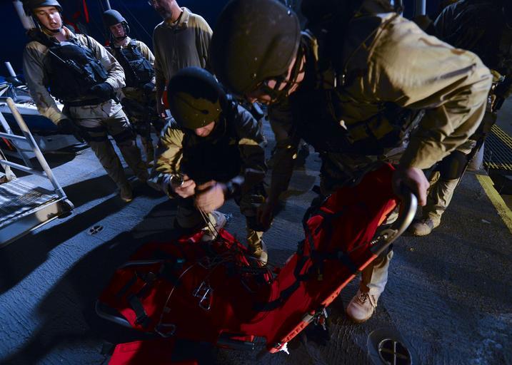| Keywords: NPASE EAST, USS Carter Hall (LSD 50) 130205-N-XZ031-1321.jpg en Sailors from the amphibious dock landing ship USS Carter Hall LSD 50 set up a stretcher aboard a training support vessel USS Prevail TSV 1 during a visit board search and seizure VBSS training exercise Carter Hall is participating in Composite Training Unit Exercise COMPTUEX off the East Coast of the United States in preparation for a scheduled deployment this spring U S Navy photo by Mass Communication Specialist 3rd Class Chelsea Mandello/Released 2013-02-05 Petty Officer 3rd Class Chelsea Mandello https //www dvidshub net/image/862051 130205-N-XZ031-1321 2013-02-09 07 33 NORFOLK VA US PD-USGov-Military-Navy USS Carter Hall LSD-50 Images from DoD uploaded by Fæ |