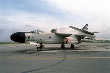 | Keywords: NRA-3B PTMC DN-SC-83-05204.JPEG en A Douglas NRA-3B Skywarrior aircraft BuNo 144834 equipped with electronic warfare jammer pods with its wing folded up at the Pacific Missile Test Center Point Mugu California USA on 5 Apr 1982 FAIL 144834 is currently located at AMARG Davis-Monthan AFB This NRA-3B aircraft is actually operated by Raytheon Flight Test Services out of Van Nuys airport CA as N578HA Buno 144825 It had the Snoopy nose radome removed and replaced with a conventional A-3 radome US Defense Visual Information Center photo DN-SC-83-05204 1982-04-05 Camera Operator PHC Thornsley USN PD-USGov Douglas A-3 Skywarrior test aircraft Raytheon Pacific Missile Test Center Point Mugu Aircraft radomes 1982 in California |