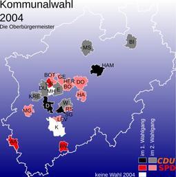 | View Original: | NRW election 2004 Oberbuergermeister.svg (654x656) | |||