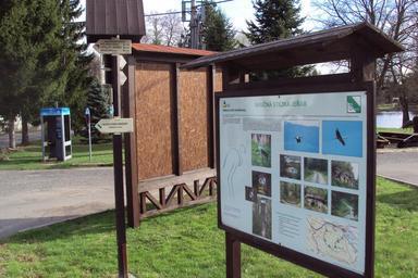 Keywords: NS Jeřáb.jpg cs Tabule naučné stezky Vojenských lesů ve středu obce Hradčany own Zákupák 2011-04-08 Information boards in Česká Lípa District Naučná stezka Jeřáb