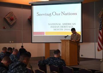 | Keywords: NSE Celebrates National American Indian Heritage Month 161128-N-WX604-009.jpg en 161128-N-WX604-009 EVERETT Wash Nov 28 2016 Lt j g Richard Min Naval Station Everett NSE command chaplain leads a prayer during the National American Indian Heritage Month 2016 observance in NSE's Grand Vista Ballroom November was designated as National American Indian Heritage Month in 1990 by then president George H W Bush U S Navy photo by Petty Officer 3rd Class Joseph Montemarano/Released <br>Unit Navy Public Affairs Support Element Det Northwest 2016-11-28 Petty Officer 3rd Class Joseph E Montemarano https //www dvidshub net/image/3016200/nse-celebrates-national-american-indian-heritage-month 161128-N-WX604-009 2016-11-28 16 43 EVERETT WA US PD-USGov-Military-Navy Naval Station Everett Images from DoD uploaded by Fæ |
