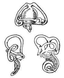 Keywords: NSRW Ear2.png The inner ear of a reptile above a bird to the left and an ox to the right Image LA2-NSRW-2-0091 jpg