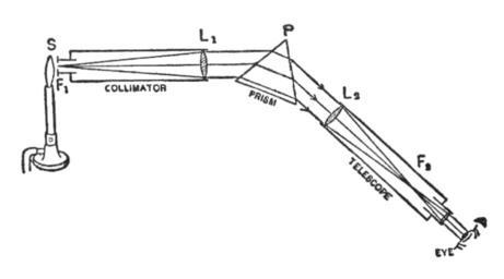 Keywords: NSRW Spectroscope1.png Fig 1 A prism-spectroscope adjusted to view one particular color in the spectrum Image LA2-NSRW-4-0325 jpg Prism spectroscopes