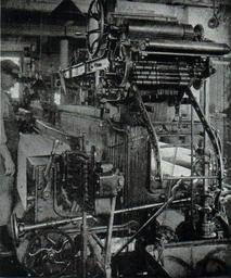 | Keywords: NSRW Story of Wool - the loom.jpg en THE LOOM The first loom was set up in Dantzig in 1661 To prevent such a machine from injuring the poor people the authorities in Poland suppressed it and privately strangled or drowned the inventor In 1733 John Kay of England invented a fly shuttle Before Kay's time the shuttle was shot by hand across and through the warp threads from side to side Kay's loom forms the basis of all modern power looms The above picture presents the marvelously ingenious power loom of the present day The New Student's Reference Work v 5 1914 Story of Wool narrative between pp 2108 and 2109 third page Underwood Underwood published 1914 PD-US LA2-NSRW-5-0123 jpg Underwood Underwood Power looms |