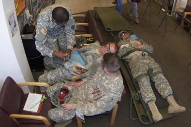 | Keywords: weed army community hospital weedarmycommunityhospital wach national training center nationaltrainingcenter ntc fort irwin fortirwin california col. jason wieman coljasonwieman command sgt maj. albert harris commandsgtmajalbertharris 2916th aviation battalion 2916thaviationbattalion emergency medical care emergencymedicalcare meddac rhc-c rhcc patient care patientcare soldier readiness soldierreadiness army training armytraining medical evacuation medevac medicalevacuationmedevac indoor FORT IRWIN, Calif. -- The 2916th Aviation Battalion utilized an off-cycle window in their calendar March 20 - 23 to conduct brigade-level training in the National Training Center's "Box". The exercise culminated at the Fort Irwin Weed Army Community Hospital (WACH) March 23. The goal of the training is to test readiness as well as hone emergency medical skills among the participating service members. One simulation presented the participants with an Improvised Explosive Device (IED) attack on a troop transport that resulted in 16 casualties. The role players required triage at the point of injury in the training area, then airlifted back to the WACH on Fort Irwin for treatment. This was a large-scale training module that involved complex planning. To make the exercise as authentic as possible training units had no warning of what they would encounter throughout the course of the event and participants were alerted only as the scenario unfolded, just as if the casualties and events were real. Large casualty events of this kind take a special type of planning coordination, material and geography to execute, and even more consideration to undertake, which makes the NTC an ideal venue for such training. The 2916th assumed the role of air medevac, requiring multiple airlifts to bring all casualties back to the WACH, where staff members prioritized, stabilized and treated the mock casualties, then prepared to fly any they determined needing specialized care beyond WACH capabilities to other nearby available medical facilities for more extensive treatment. To learn more about the people and facilities of the National Training Center and the Weed Army Community Hospital visit their official websites at www.irwin.army.mil or www.irwin.amedd.army.mil Photo by Michael Beaton, Public Affairs (Released). FORT IRWIN, Calif. -- The 2916th Aviation Battalion utilized an off-cycle window in their calendar March 20 - 23 to conduct brigade-level training in the National Training Center's "Box". The exercise culminated at the Fort Irwin Weed Army Community Hospital (WACH) March 23. The goal of the training is to test readiness as well as hone emergency medical skills among the participating service members. One simulation presented the participants with an Improvised Explosive Device (IED) attack on a troop transport that resulted in 16 casualties. The role players required triage at the point of injury in the training area, then airlifted back to the WACH on Fort Irwin for treatment. This was a large-scale training module that involved complex planning. To make the exercise as authentic as possible training units had no warning of what they would encounter throughout the course of the event and participants were alerted only as the scenario unfolded, just as if the casualties and events were real. Large casualty events of this kind take a special type of planning coordination, material and geography to execute, and even more consideration to undertake, which makes the NTC an ideal venue for such training. The 2916th assumed the role of air medevac, requiring multiple airlifts to bring all casualties back to the WACH, where staff members prioritized, stabilized and treated the mock casualties, then prepared to fly any they determined needing specialized care beyond WACH capabilities to other nearby available medical facilities for more extensive treatment. To learn more about the people and facilities of the National Training Center and the Weed Army Community Hospital visit their official websites at www.irwin.army.mil or www.irwin.amedd.army.mil Photo by Michael Beaton, Public Affairs (Released). |