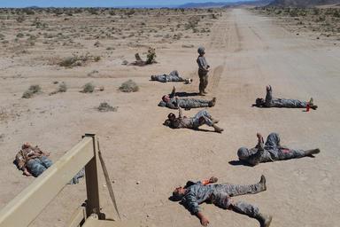 | Keywords: weed army community hospital weedarmycommunityhospital wach national training center nationaltrainingcenter ntc fort irwin fortirwin california col. jason wieman coljasonwieman command sgt maj. albert harris commandsgtmajalbertharris 2916th aviation battalion 2916thaviationbattalion emergency medical care emergencymedicalcare meddac rhc-c rhcc patient care patientcare soldier readiness soldierreadiness army training armytraining medical evacuation medicalevacuation medevac capt. sean donohue captseandonohue outdoor FORT IRWIN, Calif. -- The 2916th Aviation Battalion utilized an off-cycle window in their calendar March 20 - 23 to conduct brigade-level training in the National Training Center's "Box". The exercise culminated at the Fort Irwin Weed Army Community Hospital (WACH) March 23. The goal of the training is to test readiness as well as hone emergency medical skills among the participating service members. One simulation presented the participants with an Improvised Explosive Device (IED) attack on a troop transport that resulted in 16 casualties. The role players required triage at the point of injury in the training area, then airlifted back to the WACH on Fort Irwin for treatment. This was a large-scale training module that involved complex planning. To make the exercise as authentic as possible training units had no warning of what they would encounter throughout the course of the event and participants were alerted only as the scenario unfolded, just as if the casualties and events were real. Large casualty events of this kind take a special type of planning coordination, material and geography to execute, and even more consideration to undertake, which makes the NTC an ideal venue for such training. The 2916th assumed the role of air medevac, requiring multiple airlifts to bring all casualties back to the WACH, where staff members prioritized, stabilized and treated the mock casualties, then prepared to fly any they determined needing specialized care beyond WACH capabilities to other nearby available medical facilities for more extensive treatment. To learn more about the people and facilities of the National Training Center and the Weed Army Community Hospital visit their official websites at www.irwin.army.mil or www.irwin.amedd.army.mil Photo by Captain Sean Donoghue for WACH Public Affairs (Released), FORT IRWIN, Calif. -- The 2916th Aviation Battalion utilized an off-cycle window in their calendar March 20 - 23 to conduct brigade-level training in the National Training Center's "Box". The exercise culminated at the Fort Irwin Weed Army Community Hospital (WACH) March 23. The goal of the training is to test readiness as well as hone emergency medical skills among the participating service members. One simulation presented the participants with an Improvised Explosive Device (IED) attack on a troop transport that resulted in 16 casualties. The role players required triage at the point of injury in the training area, then airlifted back to the WACH on Fort Irwin for treatment. This was a large-scale training module that involved complex planning. To make the exercise as authentic as possible training units had no warning of what they would encounter throughout the course of the event and participants were alerted only as the scenario unfolded, just as if the casualties and events were real. Large casualty events of this kind take a special type of planning coordination, material and geography to execute, and even more consideration to undertake, which makes the NTC an ideal venue for such training. The 2916th assumed the role of air medevac, requiring multiple airlifts to bring all casualties back to the WACH, where staff members prioritized, stabilized and treated the mock casualties, then prepared to fly any they determined needing specialized care beyond WACH capabilities to other nearby available medical facilities for more extensive treatment. To learn more about the people and facilities of the National Training Center and the Weed Army Community Hospital visit their official websites at www.irwin.army.mil or www.irwin.amedd.army.mil Photo by Captain Sean Donoghue for WACH Public Affairs (Released), |