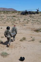 | Keywords: weed army community hospital weedarmycommunityhospital wach national training center nationaltrainingcenter ntc fort irwin fortirwin california col. jason wieman coljasonwieman command sgt maj. albert harris commandsgtmajalbertharris 2916th aviation battalion 2916thaviationbattalion emergency medical care emergencymedicalcare meddac rhc-c rhcc patient care patientcare soldier readiness soldierreadiness army training armytraining medical evacuation medicalevacuation medevac capt. sean donohue captseandonohue outdoor FORT IRWIN, Calif. -- The 2916th Aviation Battalion utilized an off-cycle window in their calendar March 20 - 23 to conduct brigade-level training in the National Training Center's "Box". The exercise culminated at the Fort Irwin Weed Army Community Hospital (WACH) March 23. The goal of the training is to test readiness as well as hone emergency medical skills among the participating service members. One simulation presented the participants with an Improvised Explosive Device (IED) attack on a troop transport that resulted in 16 casualties. The role players required triage at the point of injury in the training area, then airlifted back to the WACH on Fort Irwin for treatment. This was a large-scale training module that involved complex planning. To make the exercise as authentic as possible training units had no warning of what they would encounter throughout the course of the event and participants were alerted only as the scenario unfolded, just as if the casualties and events were real. Large casualty events of this kind take a special type of planning coordination, material and geography to execute, and even more consideration to undertake, which makes the NTC an ideal venue for such training. The 2916th assumed the role of air medevac, requiring multiple airlifts to bring all casualties back to the WACH, where staff members prioritized, stabilized and treated the mock casualties, then prepared to fly any they determined needing specialized care beyond WACH capabilities to other nearby available medical facilities for more extensive treatment. To learn more about the people and facilities of the National Training Center and the Weed Army Community Hospital visit their official websites at www.irwin.army.mil or www.irwin.amedd.army.mil Photo by Captain Sean Donoghue for WACH Public Affairs (Released), FORT IRWIN, Calif. -- The 2916th Aviation Battalion utilized an off-cycle window in their calendar March 20 - 23 to conduct brigade-level training in the National Training Center's "Box". The exercise culminated at the Fort Irwin Weed Army Community Hospital (WACH) March 23. The goal of the training is to test readiness as well as hone emergency medical skills among the participating service members. One simulation presented the participants with an Improvised Explosive Device (IED) attack on a troop transport that resulted in 16 casualties. The role players required triage at the point of injury in the training area, then airlifted back to the WACH on Fort Irwin for treatment. This was a large-scale training module that involved complex planning. To make the exercise as authentic as possible training units had no warning of what they would encounter throughout the course of the event and participants were alerted only as the scenario unfolded, just as if the casualties and events were real. Large casualty events of this kind take a special type of planning coordination, material and geography to execute, and even more consideration to undertake, which makes the NTC an ideal venue for such training. The 2916th assumed the role of air medevac, requiring multiple airlifts to bring all casualties back to the WACH, where staff members prioritized, stabilized and treated the mock casualties, then prepared to fly any they determined needing specialized care beyond WACH capabilities to other nearby available medical facilities for more extensive treatment. To learn more about the people and facilities of the National Training Center and the Weed Army Community Hospital visit their official websites at www.irwin.army.mil or www.irwin.amedd.army.mil Photo by Captain Sean Donoghue for WACH Public Affairs (Released), |