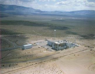 | Keywords: NTS - EMAD Facility 001.jpg en The Engine Maintenance Assembly and Disassembly E-MAD Building was built to assemble and disassemble experimental nuclear powered rocket engines The engines were tested in southwest-corner of the Nevada Test Site That program ended in 1973 Radioactive waste storage investigations also have been conducted at E-MAD including the canning of spent nuclear fuel elements The E-MAD building is 80 feet high and has 100 000 square feet of floor space Hot bay access by railcar or truck is through a 22-foot-wide 37-foot-high doorway The shielded door is made of concrete five feet thick 1284 WA-560 Federal Government of the United States 36 806459 -116 304649 PD-USGov NRDS E-MAD Water towers in Nevada |