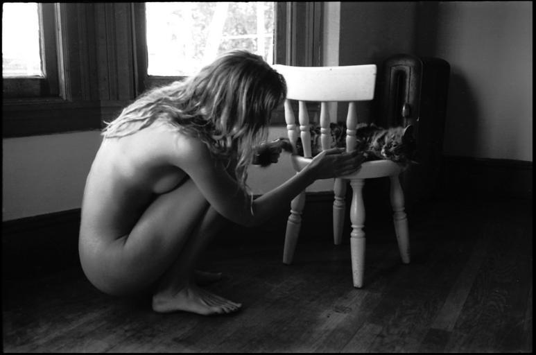 | Keywords: Nude with cat.jpg en Black and white fine art photograph of woman playing with cat own Angrylambie 1992 full nudity wooden chairs Nude female bare feet apparent nude women with blond hair Black and white photographs of nude crouching women Cats on chairs Nude women with cats |