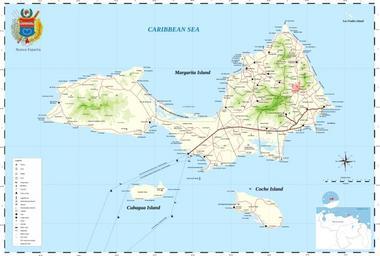 | Keywords: Nueva Esparta Map English.svg stato Nueba Esparta Estat de Nueva Esparta Nueva Esparta Karte von Nueva Esparta Nueva Esparta New Sparta is one of the 23 states estados of Venezuela It comprises Margarita Island by far the largest and most important island Coche and uninhabited Cubagua The state is the smallest one in area and is located off the northeast Caribbean coast of Venezuela It is the only insular state of Venuezuela Its name comes from the heroísm shown by its inhabitants during the Venezuelan War of Independence deemed similar to that of the Spartan soldiers of Ancient Greece The main island of Margarita alone has an area of 934 km² In 1909 the state was constituted and in 1947 the island of Cubagua was added Its capital city is La Asunción but the main urban center is Porlamar Nueva Esparta es un estado federal de Venezuela ubicado al noreste del país siendo el único Estado Federal insular y el de menor superficie de la nación El estado posee gran cantidad de monumentos históricos en la iglesia de Santa Ana fue declarada la Tercera República de Venezuela y Simón Bolívar su presidente El Estado fue designado con ese nombre a partir del 12 de mayo de 1817 con el propósito de hacer un homenaje al heroísmo de los habitantes de la isla de Margarita durante la guerra de Independencia de Venezuela calificado como Heroísmo espartano porque hizo recordar la valentía de los ciudadanos de la capital de la porción de Laconia Esparta en la península del Peloponeso en la antigua Grecia Aquí nacieron Luis Beltrán Prieto Figueroa Santiago Mariño y otros grandes personajes de la historia regional y nacional L État de Nueva Esparta « Nouvelle Sparte » est un des 23 États estados du Venezuela Il comprend les îles de Margarita de loin la plus grande et plus importante avec une surface de 934km² à elle seule Coche et Cubagua inhabitée C est le seul État insulaire du Venezuela et le plus petit de la région il est localisé sur la côte antillaise au nord-est du Venezuela Son nom vient de l héroïsme montré par ses habitants durant la guerre d indépendance vénézuelienne jugé semblable à celui des soldats spartiates de la Grèce antique L État a été constitué en 1909 et l île de Cubagua a été ajoutée en 1947 Sa ville capitale est Asunción mais le principal centre urbain est Porlamar Nueva Esparta Nueva Esparta ベネズエラ ヌエバ・エスパルタ州の 図 Nueva Esparta Nueva Esparta Nueva Esparta Nueva Esparta Nueva Esparta Estado de Nueva Esparta уэва-Эспа та Nueva Esparta Nya Sparta en delstat i Venezuela Иёлоти уэва Эспа та 新埃斯帕塔州 Own data obtained traveling across the zone with a GPS Miniature Venezuela map from File Venezuela Regiones Administrativas svg Coat of arms File Escudo Nueva Esparta svg 2015-10-14 User The Photographer/info cc-zero Map of Nueva Esparta svg Venezuela Nueva Esparta location map svg <gallery> File Division Politico Territorial Nueva Esparta svg File Nueva_Esparta_Mapa_Interactivo jpg </gallery> Translation possible Created with Inkscape Assessments 1 Nueva Esparta Map English Maps of Isla Margarita Maps of Nueva Esparta Maps of islands of Venezuela Drawings by The Photographer Files by The Photographer Images of Venezuela by User The Photographer Featured pictures by User The Photographer |