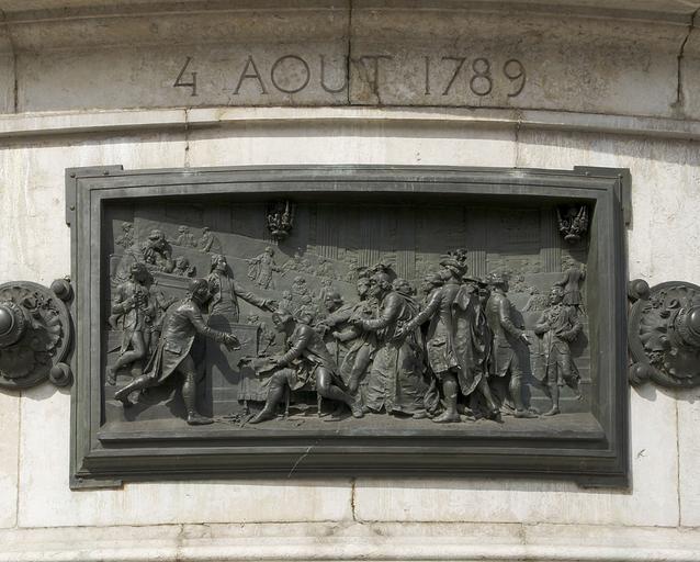 | Keywords: Nuit du 4 août 1789 abolition of the privileges.jpg The abolition of privileges night of the 4th August 1789 Bronze relief at the Monument to the Republic Place de la République Paris Abolition des privilèges nuit du 4 août 1789 Haut-relief en bronze Monument à la République Paris own creator Léopold Morice Jebulon for photograph 1883 02 avril 2011 for photograph 48 52 2 7 N 2 21 49 7 E Cc-zero QualityImage Relief 03 - 4 August 1789 Monument to the Republic Quality images by Jebulon Quality images of sculptures in Paris |