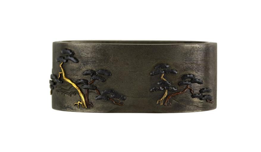 | Keywords: Nukagawa Yasunori - Fuchi with Two Figures on a Shore - Walters 51982 - Back.jpg Two figures are shown on a shore with pine trees Each figure has a basket and a rake They may be gathering sea weed There is a pine tree on either side of the composition and on the reverse This is part of a set with Walters 51 983 ~ 1800 Edo silver copper gold cm 3 6 l accession number 51 982 26762 William T / Henry Walters Collection Baltimore date and mode of acquisition unknown Walters Art Museum Henry Walters Acquired by William T or Henry Walters Signature Seiundô Nukagawa Yasunori kao place of origin Mito Japan Walters Art Museum license Fuchi in the Walters Art Museum Nukagawa Yasunori Media contributed by the Walters Art Museum needs category review |