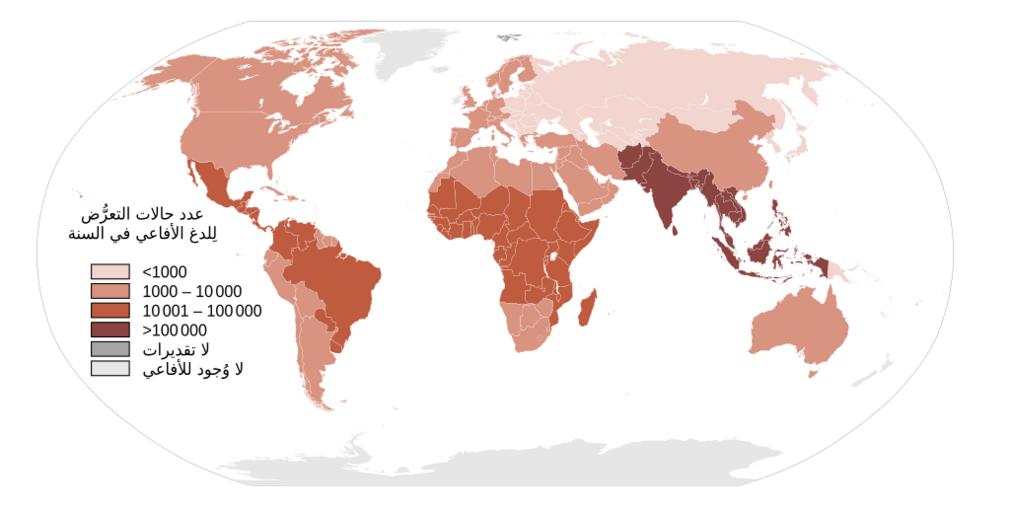 | Keywords: Number of snake envenomings-ar.svg ar خارطة تُظهرُ عدد لدغات الأفاعي التي يتعرَّضُ لها البشر في السنة 2016-04-08 Number of snake envenomings svg Ut Eightofnine باسم Number of snake envenomings svg other versions Number of snake envenomings svg English G other fields + 5 i wm RetouchedPicture Translated to Arabic - عُرِّبت باسم Number of snake envenomings svg Custom license marker 2016 04 08 Venomous snakes Snake bites Media from PLOS Medicine Serpentes distribution maps Health maps of the world Graphic Lab-ar |