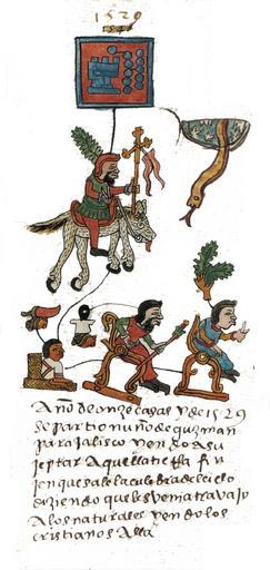 Keywords: NunoBeltranGuzman-1.jpg From Codex Telleriano Remensis Filio 44R año de onze casas y de 1529 se partio nuño de guzman para jalisco yendo a sujeptar aquella tierra finjen que sale la culebra del cielo diziendo que les venia travajo a los naturales yendo los cristianos alla Year of 11 House Mahtlactli Calli and of 1529 Nuño de Guzman left for Jalisco to subjugate that land; they feign that a snake came out of the sky saying that hard times were coming for the natives with the Christians going over there PD-Art Codex Telleriano-Remensis Artworks missing infobox template |