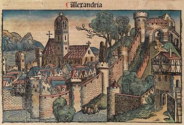 | Keywords: Nuremberg chronicles - f 077v 1.png This is a part of a scan of an historical document Title Schedelsche Weltchronik or Nuremberg Chronicle own scan from original book 1493 Hartmann Schedel PD-old-100 Nuremberg Chronicle illustrations f 071-080 077v 1 Nuremberg Chronicle Towns Alexandria in art 1490s Egypt in the 15th century |