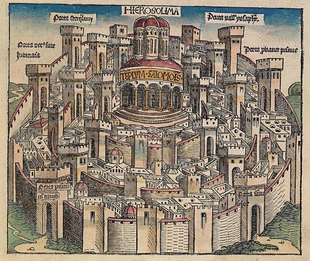 | Keywords: Nuremberg chronicles - f 15r.png Ideal view of Jerusalem and of Salomon's temple 1493 woodcut This is a part of a scan of an historical document Title Schedelsche Weltchronik or Nuremberg Chronicle own scan from original book language Latin 1493 Hartmann Schedel Out of copyright as author died more than 70 years ago PD-old Nuremberg Chronicle illustrations f 011-020 015r Nuremberg Chronicle Towns Old Testament in the Nuremberg Chronicle Jerusalem in art 1493 | ||||