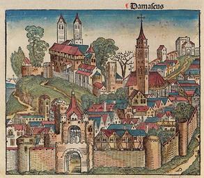 | Keywords: Nuremberg chronicles - f 23v.png This is a part of a scan of an historical document Title Schedelsche Weltchronik or Nuremberg Chronicle own scan from original book language Latin 1493 Hartmann Schedel Out of copyright as author died more than 70 years ago PD-old Nuremberg Chronicle illustrations f 021-030 023v Nuremberg Chronicle Towns Damascus in the 1490s |