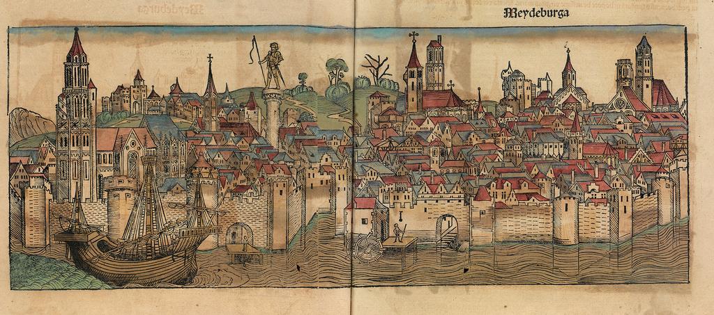 | Keywords: Nuremberg chronicles - MEYDEBURGA.png Schedel'schen Weltchronik Blatt 179v/180r here own scan from original book 1493 Michel Wolgemut Wilhelm Pleydenwurff Text Hartmann Schedel PD-old-100 <gallery heights 200px widths 250px perrow 3 > Image Schedelsche Weltchronik - Paris jpg Image said to be Paris Image Nuremberg chronicles f 51v 1 png Image said to be Tarvisio </gallery> Nuremberg Chronicle Towns Nuremberg Chronicle illustrations f 171-180 180 1493 in Magdeburg | ||||
