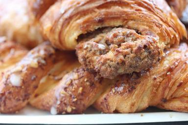 Keywords: nusshoernchen baecker sweet baker fine pastry treat blaettereig small cakes filling