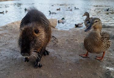 Keywords: nutria duck pond wild animal wild animal