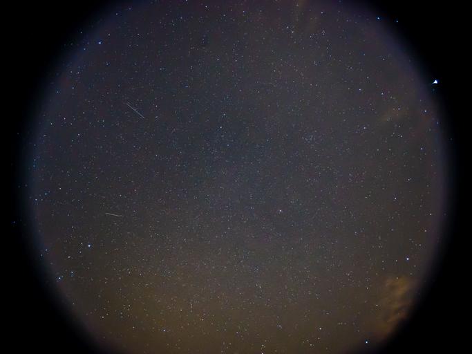 | Keywords: wide grand angle grandangle night sky texture abstract black background round circle An extreme wide field (120°) using the Canon EF-S 10-22 3.5-4.5 USM without autocrop. The sky was very polluted : altough being quite far from all towns, the coulds and pollen dust dimmed everything. The milky way was invisible ! Processing : WB 3200k, exposure +0.91, medium contrast, medium NR, whites enhanced and highlights reduced (this works very well to extract stars), vignetting corrected with a radial filter, increased saturation (for cosmetic blue) Top middle : Ursa Major, Center : Bootes (bright star is Arcturus) and Corona Borealis Top left : Polaris, with the satellite trail in the ursa minor "dip" Top right : on the edge, Jupiter is goofing around, funnel shaped ! Bottom left : not sure, probably a stretched Lyra. The distortion makes constellations hard to recognize An extreme wide field (120°) using the Canon EF-S 10-22 3.5-4.5 USM without autocrop. The sky was very polluted : altough being quite far from all towns, the coulds and pollen dust dimmed everything. The milky way was invisible ! Processing : WB 3200k, exposure +0.91, medium contrast, medium NR, whites enhanced and highlights reduced (this works very well to extract stars), vignetting corrected with a radial filter, increased saturation (for cosmetic blue) Top middle : Ursa Major, Center : Bootes (bright star is Arcturus) and Corona Borealis Top left : Polaris, with the satellite trail in the ursa minor "dip" Top right : on the edge, Jupiter is goofing around, funnel shaped ! Bottom left : not sure, probably a stretched Lyra. The distortion makes constellations hard to recognize |