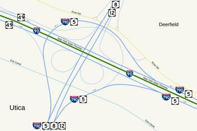 | Keywords: NY 49 Eastern Terminus map.svg Interchange of the eastern terminus of New York State Route 49 at a complex interchange with I-790 NY 5 NY 8 and NY 12 near Utica New York in the United States Own 2008-03-01 JohnnyAlbert10 Inkscape Interstate 90 in New York Interstate 790 New York State Route 5 New York State Route 8 New York State Route 12 New York State Route 49 |