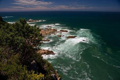 Keywords: nysna heads green sea rocks ocean seascape curved horizon