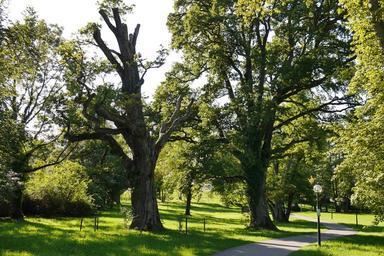 Keywords: oak dead tree solitary tree live new park summer away walk trees grass sunny