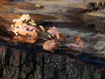 Keywords: oak leaves brown oak leaves dry road autumn tree wood tree stump
