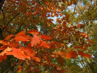 Keywords: oak leaves red close sunny october autumn fall foliage forest leaves autumn forest