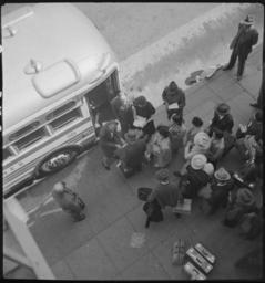 | Keywords: Oakland, California. Boarding a bus at the Wartime Civil Control Administration station for Tanfora . . . - NARA - 537705.jpg Scope and content The full caption for this photograph reads Oakland California Boarding a bus at the Wartime Civil Control Administration station for Tanforan Assembly center These evacuees of Japanese ancestry will later be transferred to a War Relocation Authority center to spend the duration General notes 537705 Local identifier 210-G-C372 Department of the Interior War Relocation Authority 02/16/1944 - 06/30/1946 NARA-Author Lange Dorothea 1895-1965 Photographer 1372774 <br /> Still Picture Records Section Special Media Archives Services Division NWCS-S National Archives at College Park 8601 Adelphi Road College Park MD 20740-6001 1942-05-06 Record group Record Group 210 Records of the War Relocation Authority 1941 - 1989 Record group ARC 537 Central Photographic File of the War Relocation Authority compiled 1942 - 1945 Series ARC 536000 File unit File unit ARC Variant control numbers NAIL Control Number NWDNS-210-G-C372 Other versions <gallery> File Oakland _California _Boarding_a_bus_at_the_Wartime_Civil_Control_Administration_station_for_Tanfora_ _ _ _-_NARA_-_537705 tif tif File Oakland _California _Boarding_a_bus_at_the_Wartime_Civil_Control_Administration_station_for_Tanfora_ _ _ _-_NARA_-_537705 jpg jpg </gallery> NARA-cooperation PD-USGov Dorothea Lange Japanese American internment processing in Oakland |