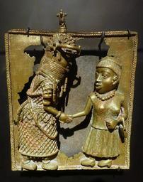 | Keywords: Oba Akenzua II greets Queen Elizabeth II, Benin City, Nigeria, No. 2010.01.0001 - Etnografiska museet - Stockholm, Sweden - DSC01010.JPG en Exhibit in the Etnografiska museet Stockholm Sweden Bronze plaque depicting the meeting between Akenzua II Oba of Benin and Queen Elizabeth II during the latter's visit to Nigeria in 1956 Cast in 2009 by the Oba's grandson Uyi Omodamwen born 1974 and donated to the museum in 2010 Photography was permitted in the museum without restriction em 1538749 2010 01 0001 yes photo 2014-09-16; plaque 2009 own Photographer Daderot Bronze by Uyi Omodamwen other versions cc-zero Benin bronzes in the Etnografiska museet Uploaded with UploadWizard |