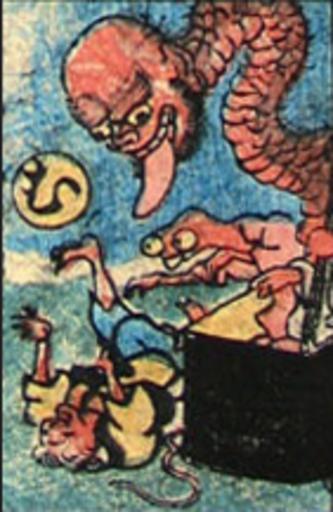 | Keywords: Obake Karuta 2-11.jpg Card from the Japanese game obake karuta monster cards c early 19th century Each card features a monster from Japanese mythology and a character from the hiragana syllabary From http //www columbia edu/cu/ealac/dkc/calendar/godzilla/godzilla_exhibition_2 html here The creature depicted on this card is maybe a bakemono-tsuzura The hiragana character is ã‚ read as mu PD-Art Obake karuta Artworks missing infobox template | ||||