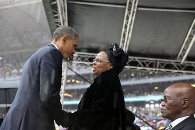 | Keywords: Obama and Machel.jpg en President Obama greets Graca Machel Nelson Mandela's widow after his speech at the memorial service Official White House Photo by Pete Souza 2013-12-13 09 22 20 http //www whitehouse gov/photos-and-video/photogallery/president-obama-attends-nelson-mandela-memorial-service President Obama Attends the Nelson Mandela Memorial Service White House website Official White House Photo by Pete Souza PD-USGov Uploaded with UploadWizard Death and state funeral of Nelson Mandela Soccer City Barack Obama in South Africa Graça Machel Barack Obama with people Photographs by Pete Souza |