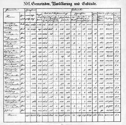 | Keywords: Oberamt Ravensburg Tabelle I Gemeinden.jpg Tabelle Gemeinden Bevölkerung und Gebäude im Oberamt Ravensburg Beilage von Beschreibung des Oberamts Ravensburg Scan einer Faksimileausgabe von 1978 Scan from facismilie edition of 1978 1836 Gemeinfrei Public Domain PD-old Beschreibung des Oberamts Ravensburg 000Tabelle1 |