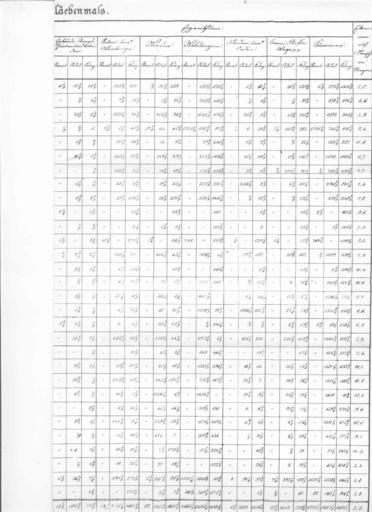 | Keywords: Oberamt Waldsee Tabelle 2b.jpg en Scan from the book Beschreibung des Oberamts Waldsee edited 1834 written by Ober-Finanzrath v Memminger Beschreibung des Oberamts Waldsee Königlich Statistisch-Topographisches Bureau edited 1834 reprinted 1978 by Horst Bissinger KG Verlag und Druckerei Magstadt PD-old Beschreibung des Oberamts Waldsee |