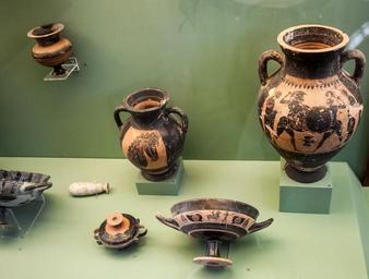 Keywords: Objects from an inhumation, 550-525 BC.jpg object history credit line accession number Marmaro T78 Photo by Szilas in the Archaeological Museum of Rhodes Commonist Ancient Greek pottery in the Archaeological Museum of Rhodes