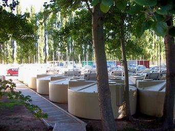 Keywords: Observatorio Pierre Auger Almacen Tanques Rayos Cósmicos.jpg Observatorio Pierre Auger en Malargüe Argentina Almacén de detectores de rayos cósmicos own 2007-02 I the author of this work Pierre Auger Observatory FoP-Argentina