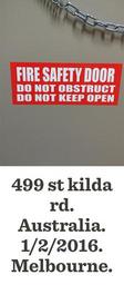 Keywords: ** Update: noted in Melbourne that all fire escape door have signs stating "Do not obstruct fire escape door" and "Alarm will sound if door is opened" retail melbourne australia