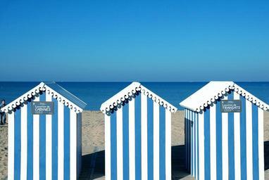 Keywords: ocean bathing huts blue