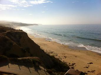 Keywords: ocean beach morning mist couple california crystal cove