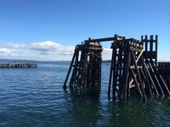 Keywords: ocean pier port town sea dock pacific coast shore abandoned pier old pier wooden pier scenic washington state scenery