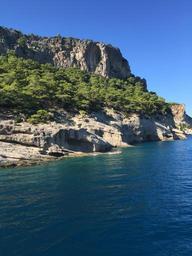 Keywords: ocean sea mountains blue skies boat beach island bright sunny summer coastline sky water landscape sun