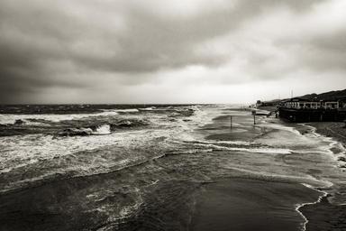 Keywords: ocean sea waves shore coast storm cloudy clouds black and white nature landscape