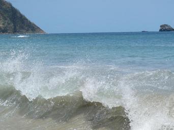Keywords: ocean wave waves beach water flowing sea outside caribbean eastern caribbean tropics tropical shoreline island st lucia turquoise sand swirl clear crest horizon blue