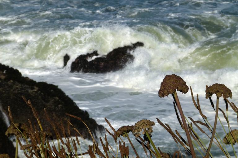 Keywords: ocean waves flowers meadow rocks coastline water